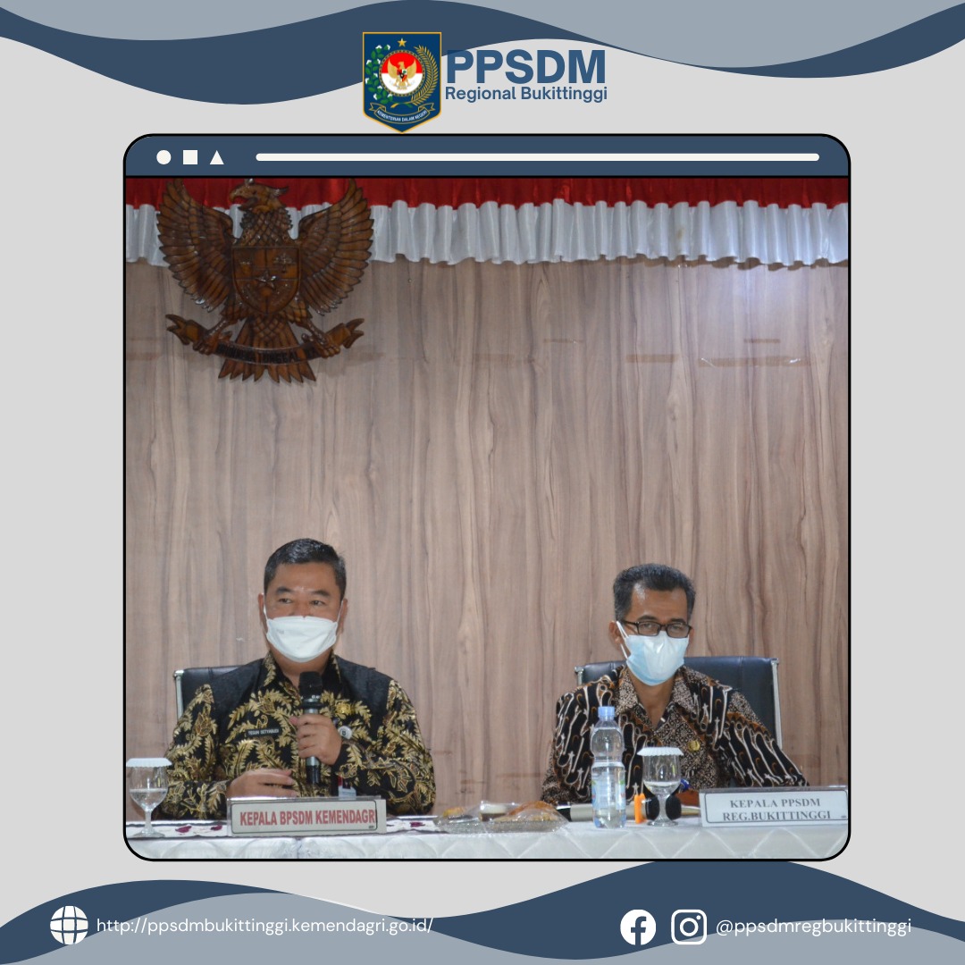 Kurang Lebih 2 tahun, semenjak terakhir kalinya Bapak Dr. Teguh Setyabudi, M.Pd berkesempatan mengunjungi PPSDM Regional Bukittinggi, akhirnya pertemuan antara pegawai PPSDM dengan Kepala BPSDM dapat diwujudkan yang tentunya dengan mengikuti aturan protokol kesehatan dengan mengambil tempat di Aula Proklamasi Gedung Kantor PPSDM Regional Bukittinggi. Dalam kesempatan tersebut ada beberapa hal yang dipesankan oleh Kepala Badan Pengembangan Sumber Daya Manusia kepada Segenap Pegawai PPSDM yang menghadiri pertemuan tersebut, diantaranya: