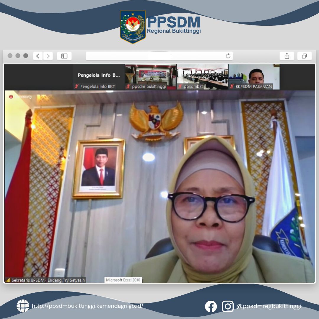 Rangkaian selanjutnya adalah arahan dari Kepala Badan Pengembangan Sumber Daya Manusia (BPSDM), yang diwakili oleh Sekretaris BPSDM, Dr. Dra. Hj. Endang Try Setyasih, MM, memulai arahannya Sekban mengingatkan bahwa saat ini kita masih berada di dalam kondisi Pandemi Covid -19 sehingga pelaksanaan kegiatan dilaksanakan secara klasikal dan virtual, oleh karena itu, baik peserta maupun penyelenggara betul-betul harus menerapkan protokol kesehatan dengan ketat. Selanjutnya Sekban juga menyampaikan bahwa sejak tanggal 27 Juli 2021 Core Values “ BerAKHLAK” dan Employer Branding “ Bangga Melayani Bangsa” resmi diluncurkan oleh Presiden RI, Bapak Joko Widodo. Tujuan diluncurkan Core Values ini adalah untuk menyeragamkan nilai-nilai dasar bagi seluruh ASN yang ada di Indonesia, termaksud CPNS. BerAKHLAK merupakan singkatan dari Berorientasi Pelayanan, Akuntabel, Kompeten, Harmonis, Loyal, Adaptif, dan Kolaboratif. Ditetapkannya Core Values ini memberikan penguatan budaya kerja ASN yang profesional sekaligus memberikan kemudahan proses adaptasi bagi ASN ketika melakukan mobilitas antar instansi pemerintahan. Sehingga satu Core Values yang berlaku secara umum ini turut memperkuat peran ASN sebagian perekat dan pemersatu bangsa dalam wadah negara kesatuan Republik Indonesia.”
