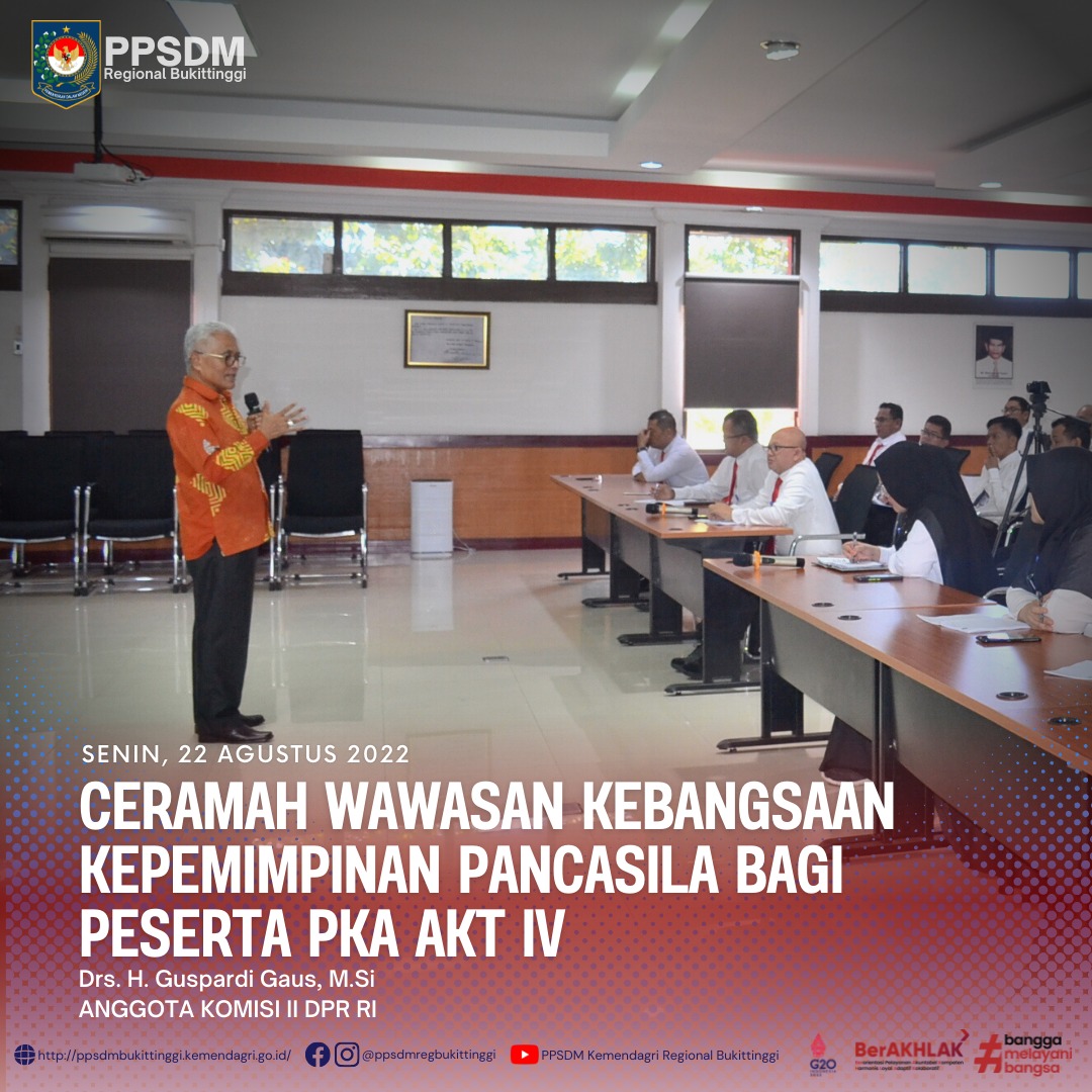 Hal itu diungkapkannya dalam acara Ceramah Pakar dengan tema Wawasan Kebangsaan Kepemimpinan Pancasila dengan Memperhatikan Potensi Kearifan Lokal dalam Pelatihan Kepemimpinan Administrator Angkatan 4 Tahun 2022, Pusat Pengembangan SDM Kementerian Dalam Negeri Regional Bukittinggi.