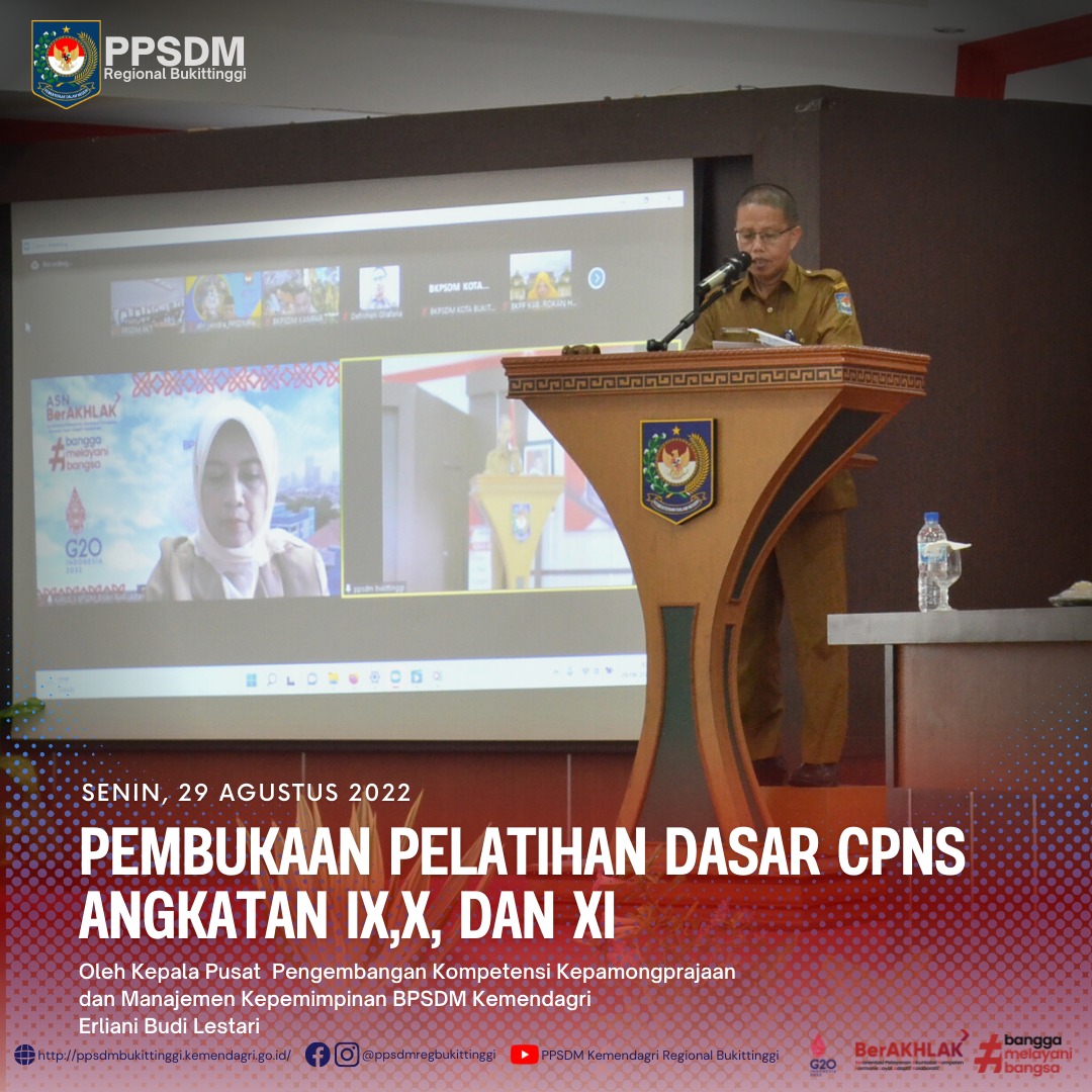 “Perubahan lingkungan dan teknologi mempengaruhi kesiapan Sumber Daya Manusia dan Infrastruktur. Apalagi kita akan masuk ke Indonesia Emas 2045. Oleh karena itu, memerlukan kesiapan terutama kesiapan Sumber daya Manusia dan dukungan infrastruktur yaitu teknologi informasi dan komunikasi (TIK). Hal tersebut, sejalan dengan visi Presiden Joko Widodo tentang ASN yaitu SMART ASN,” ungkapnya. Selanjutnya, ia juga menekankan bahwa ASN harus menguasai menguasai teknologi, informasi komunikasi, dan bahasa asing sehingga organisasi pemerintahan memiliki dukungan yang memadami dari teknologi informasi yang memadai.