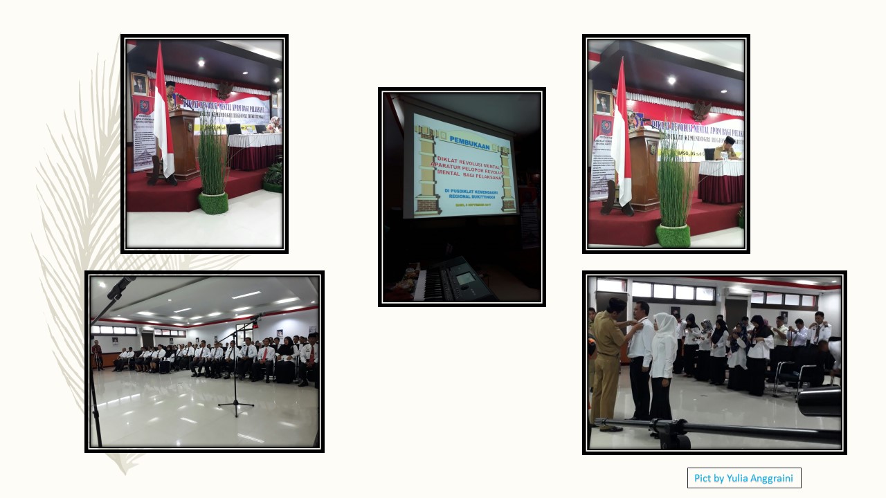 Dalam laporannya, Ibu Ratna Sriwina, M.Si menyampaikan bahwa kegiatan akan diselenggarakan dari 5 s.d 9 September 2017 dengan peserta yang direncanakan 30 (tiga puluh) orang dan hingga selesainya pembukaan peserta yang mendaftar ulang sebanyak 24 (dua puluh empat) orang dengan instansi asal yaitu Pemerintah Kabupaten Pasaman, Pemerintah Kabupaten Pasaman Barat, Pemerintah Kabupaten Musi Rawas, Pemerintah Kabupaten Sarolangun, Pemerintah Indragiri Hilir, Pemerintah Kabupaten Nias Selatan, Pemerintah Kabupaten Solok Selatan, Pemerintah Kabupaten Tanah Datar, Pemerintah Kabupaten Pesisir Selatan, Pemerintah Kota Payakumbuh dan Pusdiklat Regional Bukittinggi. Setalah selesai pembacaan laporan, Kapusdiklat, Bapak DR. Ir. H. Suroyo, M.Si menyampaikan arahan kepada peserta untuk mampu mengambil pembelajaran dalam kelas dengan semangat menjadi bagian dalam menjalankan gerakan bersama yang dicanangkan Presiden, Bapak. Ir. H. Joko Widodo yaitu Revolusi Mental. Sebab, gerakan tersebut akan menjadi mimpi tanpa gerak bersama terutama pelaksana yang bersentuhan langsung dengan masyarakan setiap saat. Sehingga diklat ini bukan hanya diikuti karena perintah atasan tetapi juga harus dimaknai sebagai bagian membangun bangsa yang lebih baik. Akhinya kegiatan resmi dibuka dengan pengetukan tiga kali palu kegiatan.