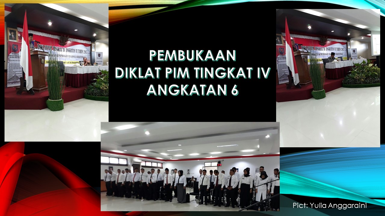Laporan Kabid Diklat diilanjutkan oleh Sambutan dari Kepala Pusat Pendidikan dan Pelatihan Kementerian Dalam Negeri Regional Bukittinggi, Bapak DR. Ir. H. Suroyo, M.Si. Kapusdiklat membuka sambutannya dengan menyampaikan permohonan maaf atas ketidak hadiran Kepala Badan Pengembangan SDM Kementerian Dalam Negeri disebabkan adanya agenda kedinasan lainnya. Dalam sambutannya Kapusdiklat mengingatkan tentang kepemimpinan yang menunjukkan nilai kedisplinan, prakarsa dan kerja sama karena bangsa Indonesia membutuhkan pemimpin aparatur yang mampu membawa perbaikan dalam semua bidang kehidupan berbangsa dan bernegara. Kapusdiklat juga mengaharapkan perilaku peserta sebagai pemimpin tersebut akan lebih baik selama keikutsertaannya dalam diklat sehingga ketika kembali kesatuan kerja peserta tinggal membuat perilaku tersebut jadi kerja nyata. Selanjutnya, ketukan palu sebanyak 3 kali menjadi penanda dibukanya secara resmi dikat dan penalungan tanda peserta secara simbolik dan diikuiti seluruh peserta.