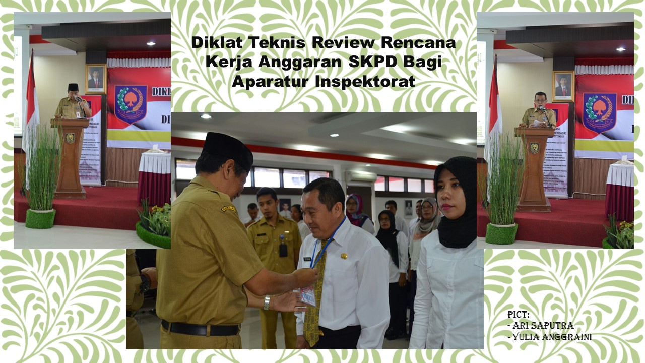 Dalam laporannya, Bapak Drs. H. Aliyarmen, M.Si menyampaikan bahwa kegiatan akan diselenggarakan dari 12 s.d 16 September 2017 dengan peserta yang direncanakan 30 (tiga puluh) orang dan hingga selesainya pembukaan peserta yang mendaftar ulang sebanyak 27 (dua puluh tujuh) orang dengan instansi asal yaitu Pemerintah Kabupaten Pesisir Selatan, Pemerintah Kabupaten Seluma, Pemerintah Kabupaten Nias Selatan, Pemerintah Kabupaten Indragiri Hilir, Pemerintah Kabupaten Tanah Datar, Pemerintah Kabupaten Musirawas, Pemerintah Kota Payakumbuh, Pemerintah Kabupaten Pasaman Barat, Pemerintah Kabupaten Sarolangun dan Pemerintah Kabupaten Lima Puluh Kota. Setalah selesai pembacaan laporan, Kapusdiklat, Bapak DR. Ir. H. Suroyo, M.Si menyampaikan arahan kepada peserta untuk mampu mengambil pembelajaran pada tiap bagian pembelajaran. Pencegahan terhadap adanya munculnya kesalahan pelaksanaan anggaran dimulai sejak mulai disusunnya rencana kerja anggaran. Tentunya pencegahan tersebut bermula dari peran aparatur inspektorat dalam melakukan pengkajian terhadap rencana tersebut. Bila kepahaman yang menghasilkan ketepatan dalam pengkajian rencana anggaran maka menghasilkan anggaran yang berdaya guna dan berhasil guna untuk kepentingan masyarakat. Pembelajaran diklat diharapkan mampu menambah dan memperkuat kepahaman pesertanya dalam melakukan pengkajian rencana anggaran yang pada merupakan aparatur inspektora di pemerintah daerah. Akhinya kegiatan resmi dibuka dengan pengetukan tiga kali palu kegiatan.